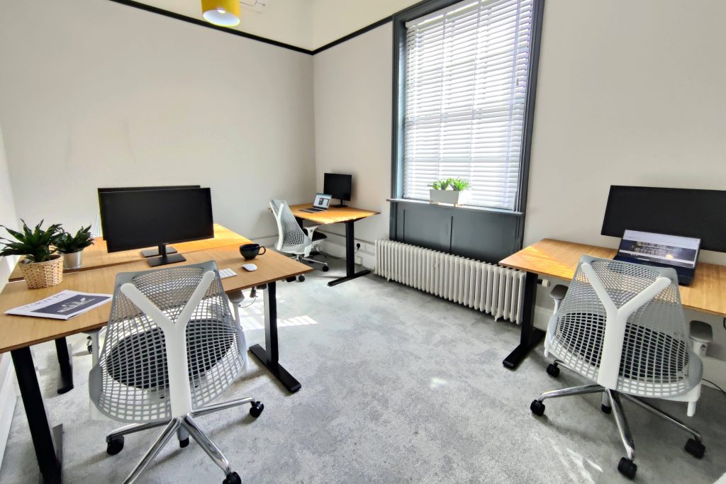 - Fully-furnished: Each private office comes fitted with bamboo electric standing desks and ergonomic Herman Miller chairs, alongside 24” monitors, so you have everything you need to start working from the day you move in.